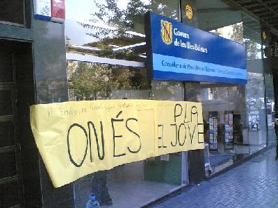 Representants dels Joves d’EU i del JEN-PSM s’ha presentat aquest matà a la inauguració de l’Oficina d’Emancipació Jove de les Illes Balears per protestar davant la consellera de Presidència i Esports, Rosa Puig, i el director general de Joventut, Juan Francisco Gálvez, pel fet que el Govern de les Illes Balears no hagi elaborat encara el Pla de Joventut 2005-2008.