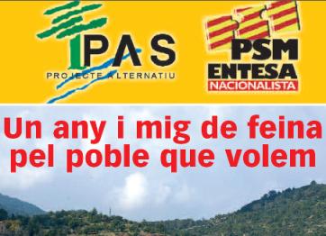 "Un any i mig de feina pel poble que volem" 茅s el t铆tol de la nova publicaci贸 editada per l'agrupaci贸 del PAS-PSM d'Esporles.