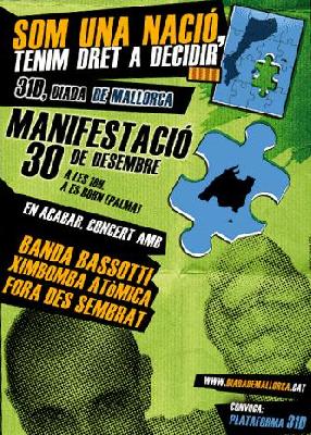Veniu tots i totes el proper diumenge 30 de desembre a la manifestaci贸 unit脿ria amb motiu de la Diada de Mallorca. El lema 茅s 鈥淪om una naci贸, tenim dret a decidir鈥, i la convocat貌ria parteix de la Plataforma 31 Desembre (de la qual el PSM forma part).