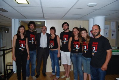 Aquest acte es troba dins el marc de la campanya VOLEM VEURE TV3!!! CAP RETALLADA! que els Joves d鈥橢squerra Nacionalista estan duent a terme. A m茅s de l鈥檈ntrega del manifest al vicepresident de la Generalitat de Catalunya, tenen en marxa una campanya de marxandatge i una xerrada organitzada per dilluns dia 29 de juny a les 19.30h a la seu del PSM de Palma, C/ Isidoro Antill贸n n煤m. 9, baixos, sobre QU脠 PASSA A TV3? DEBAT SOBRE LA SITUACI脫 A IB3 I TV3 on Maties Salom i Dami脿 Perell贸 exposaran la situaci贸 jur铆dica en que es troben IB3 i TV3.