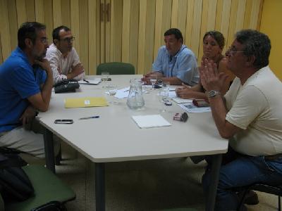 El secretari general del PSM-EN i portaveu parlamentari del BLOC i PSM-Verds, Biel Barcel贸, i el senador del PSM-EN, Pere Sampol, s鈥檋an reunit avui amb representants del comit猫 d鈥檈mpresa d鈥橲panair (Eva Mar铆n i Javier Carretero, de CCOO, i Guillem Villalonga, d鈥橴GT), per tractar la situaci贸 que viuen els treballadors de la companyia.