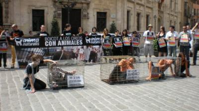 L’organització Anima Naturalis, de fet, han realitzat un impactant acte davant de Cort precisament per donar suport a aquesta iniciativa del Bloc. Alguns activistes s’han engarjolat simulant ser animals salvatges per causar impacte en els ciutadans i fer-los reflexionar sobre la crueltat i l’anacrònic que suposen els circs que utilitzen els animals salvatges com a reclam.