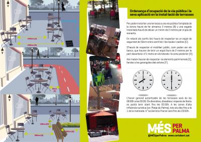 MÉS per Palma insta a la regidora San Gil ha reaccionar davant aquest incompliments i d’altres com l’obstrucció que provoquen al pas dels vianants els cartells dels bars i restaurants que anuncien la seva oferta ocupant un espai que sobrepassa el permès per la llicència de terrassa, i creant de retruc situacions de greu dificultat en el trànsit dels vianants.