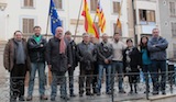 Batles i regidors de MÉS per Mallorca d’arreu de l’illa, juntament amb el coordinador general de la coalició i portaveu parlamentari del Grup MÉS, Biel Barceló, han comparegut en roda de premsa davant l’Ajuntament d’Inca, primer consistori que va aprovar la moció municipal per declarar la senyera i els llaços quadribarrats com a símbols d’interès local.