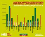 L’anterior legislatura es va arribar a invertir un milió i mig d’euros, fins a tancar el pressupost del 2011 amb 700.000 euros. A partir de l’any 2012, el 2013 i ara al 2014, el pressupost de Cort per a Cooperació Internacional és de 0 euros. Això, mentre el 2013 es van destinar 11 milions d’euros als bancs, uns doblers que provenien de partides pressupostades i no gastades durant l’any.