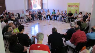 Els regidors a Cort Antoni Verger, Neus Truyol i Antoni Noguera han analitzat l’actualitat municipal i junt amb tots els membres de l’assemblea presents avui a s’Escorxador hi ha hagut unanimitat en que l’objectiu més immediat i amb la mirada posada al 2015 és el de seguir treballant per recuperar el futur de Palma. “Hem de recuperar la Palma que el PP ens està robant, i estam convençuts que el proper govern de Cort serà d’esquerres, progressista, ecologista i sobiranista. Seguim treballant per garantir que aquest és el futur de Ciutat”.