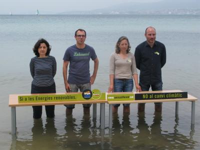 La coalició PSM-IniciativaVerds-Entesa ha explicat avui les propostes per potenciar les energies renovables i lluitar contra el canvi climàtic. Els candidats al Parlament, Biel Barceló i Fina Santiago, al Consell, Magdalena Palou, i a l’Ajuntament de Palma, Antoni Verger i Marisol Fernández, han comparegut davant dels mitjans de comunicació des de dins la mar, a la platja de Ciutat Jardí (a Palma). “Avui feim aquesta roda de premsa a dins l’aigua, per escenificar una amenaça real a les Illes Balears: la pujada del nivell de la mar a conseqüència de l’escalfament del planeta i el canvi climàtic, que podria tenir conseqüències desastroses per a les nostres vides, per al nostre turisme i per a la nostra economia”, ha explicat Biel Barceló.